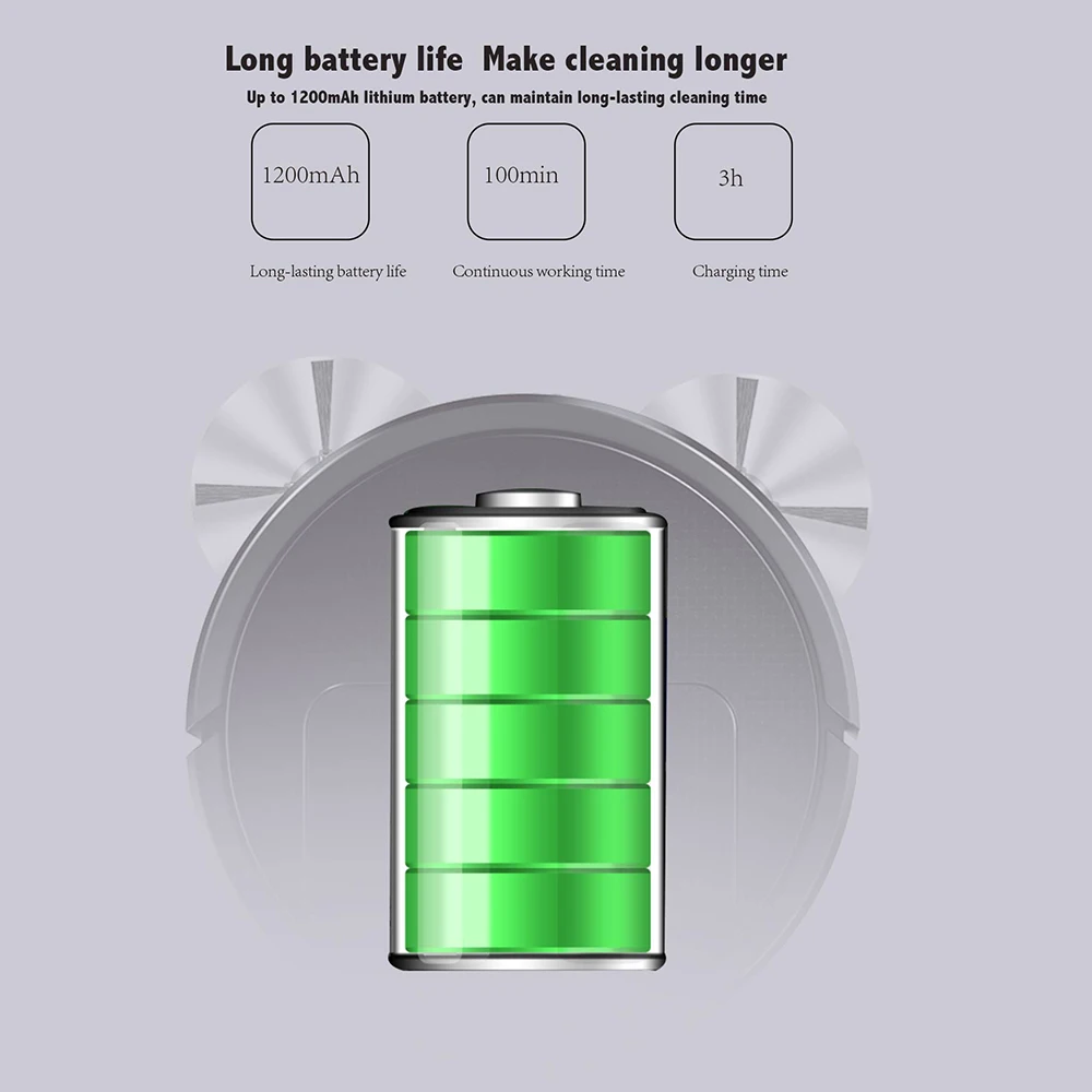 4. Long battery life of large battery makes cleaning longer: to, 1200mAh lithium battery can maintain long cleaning time