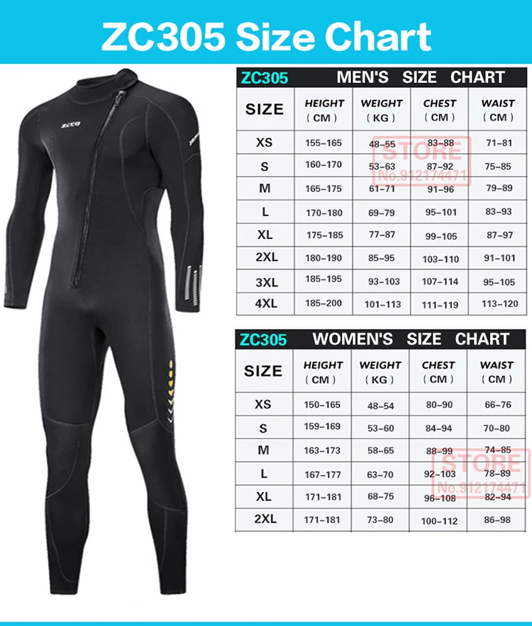 ZC305 Size Chart
